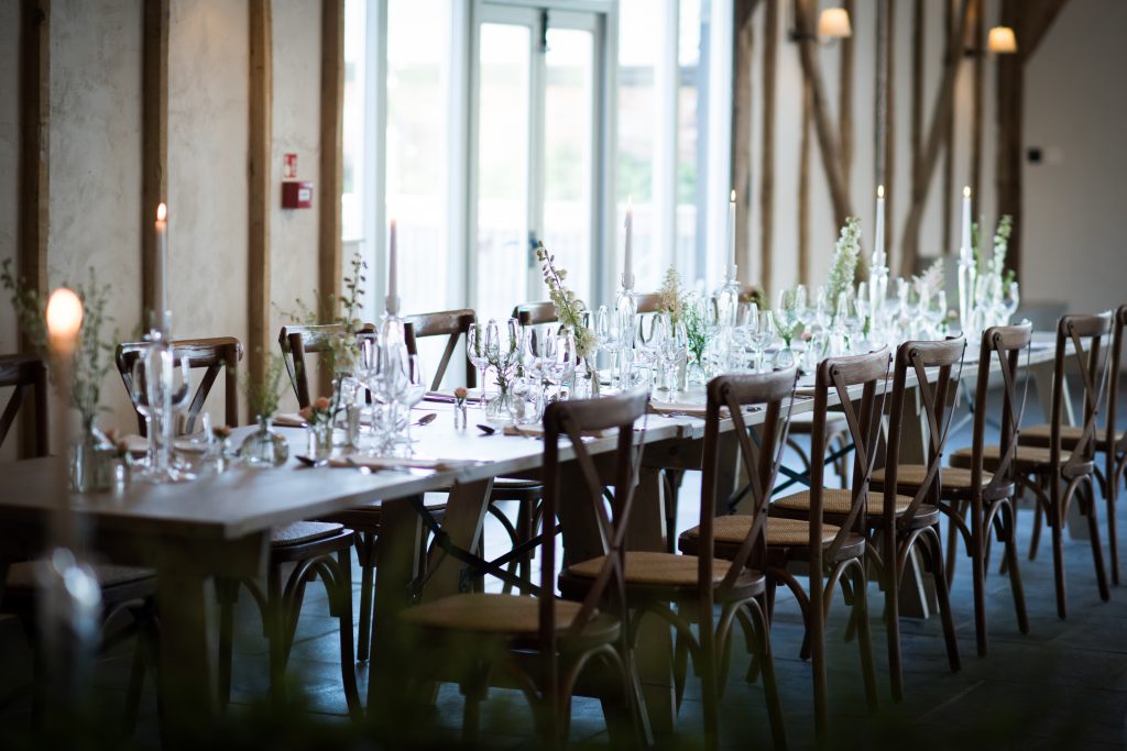 Our 19th century barn has a rich farm history and retains the best features from its original architecture, like the authentic wooden beams and chandeliers which create a charming and relaxed feel that will instantly tell a story. In contrast, the modern touches fit in perfectly with the rustic presence of the barn and large windows provide a light and airy space for any celebration.