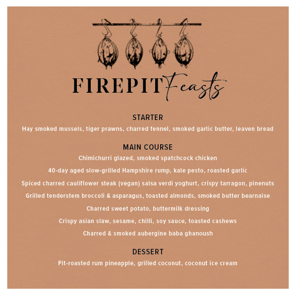 Join us in our relaxed and pretty courtyard for our Firepit Feast where we’ll be stoking the flames of our firepit and combining some of the best local ingredients cooked, smoked and charred on our firepit to bring new depths of flavours.