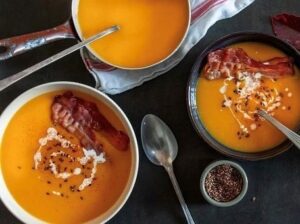 Pumpkin soup with tapenade toast