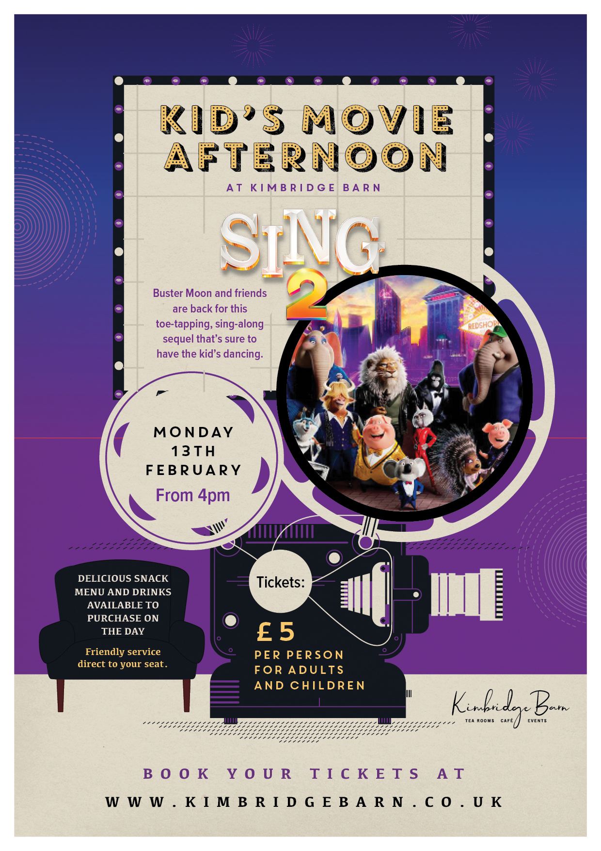 Bring your blankets, get cosy and sink into your seats as you watch your favourite singing, dancing all-stars led by Buster Moon, fulfil their dreams of staging their most dazzling show yet.