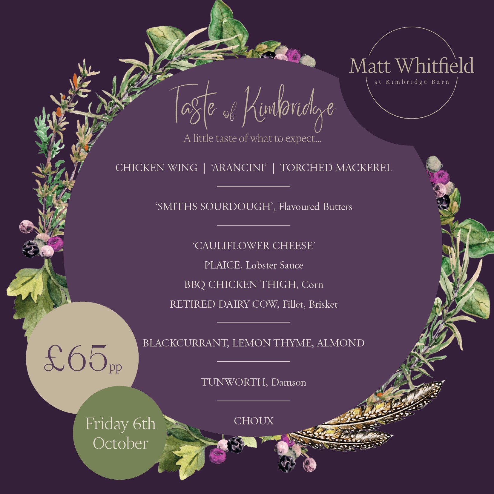 Enjoy a Taste of Kimbridge where we’ll be serving a set menu of between 7 and 12 courses. Your table is yours for the evening, so there’s no rush, just relax and enjoy.