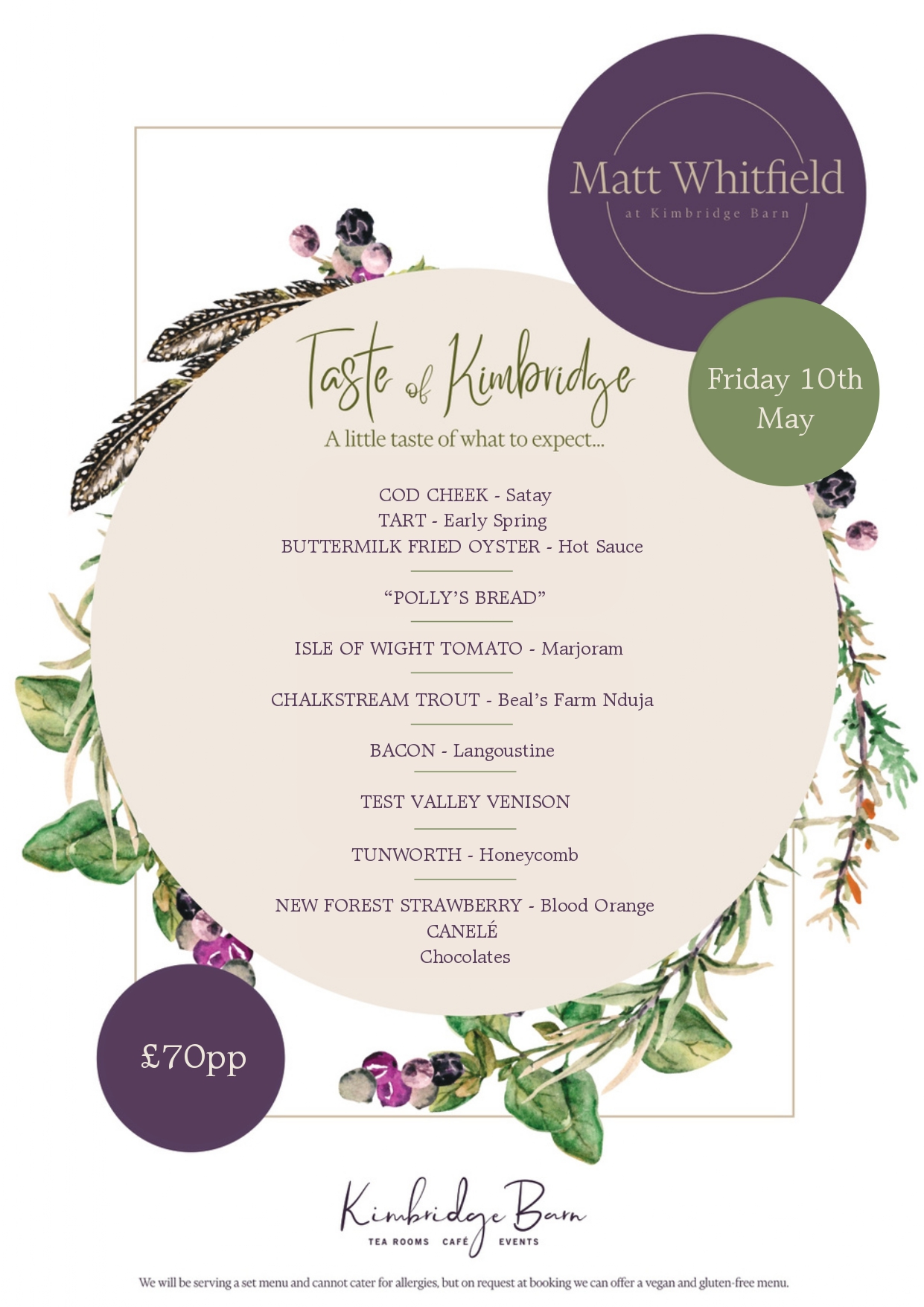 Enjoy a Taste of Kimbridge where we’ll be serving a set menu of between 7 and 12 courses. Your table is yours for the evening, so there’s no rush, just relax and enjoy.