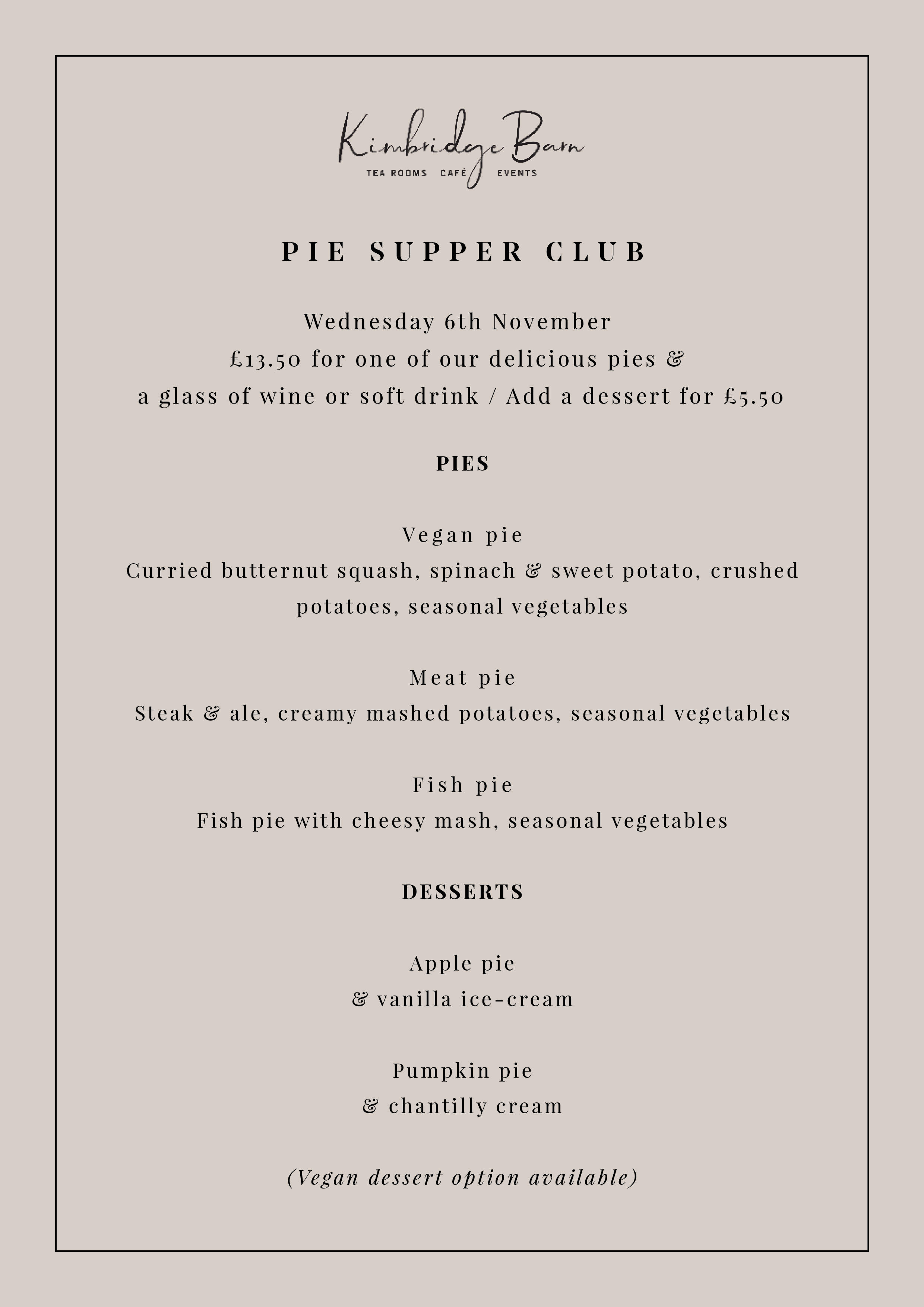 Another month, another fabulous supper club and this time it’s all about the star of British comfort food – pies! Whether you prefer delicious vegetables, tender chunks of meat or mouth-watering sweet pies you’re in for a treat.