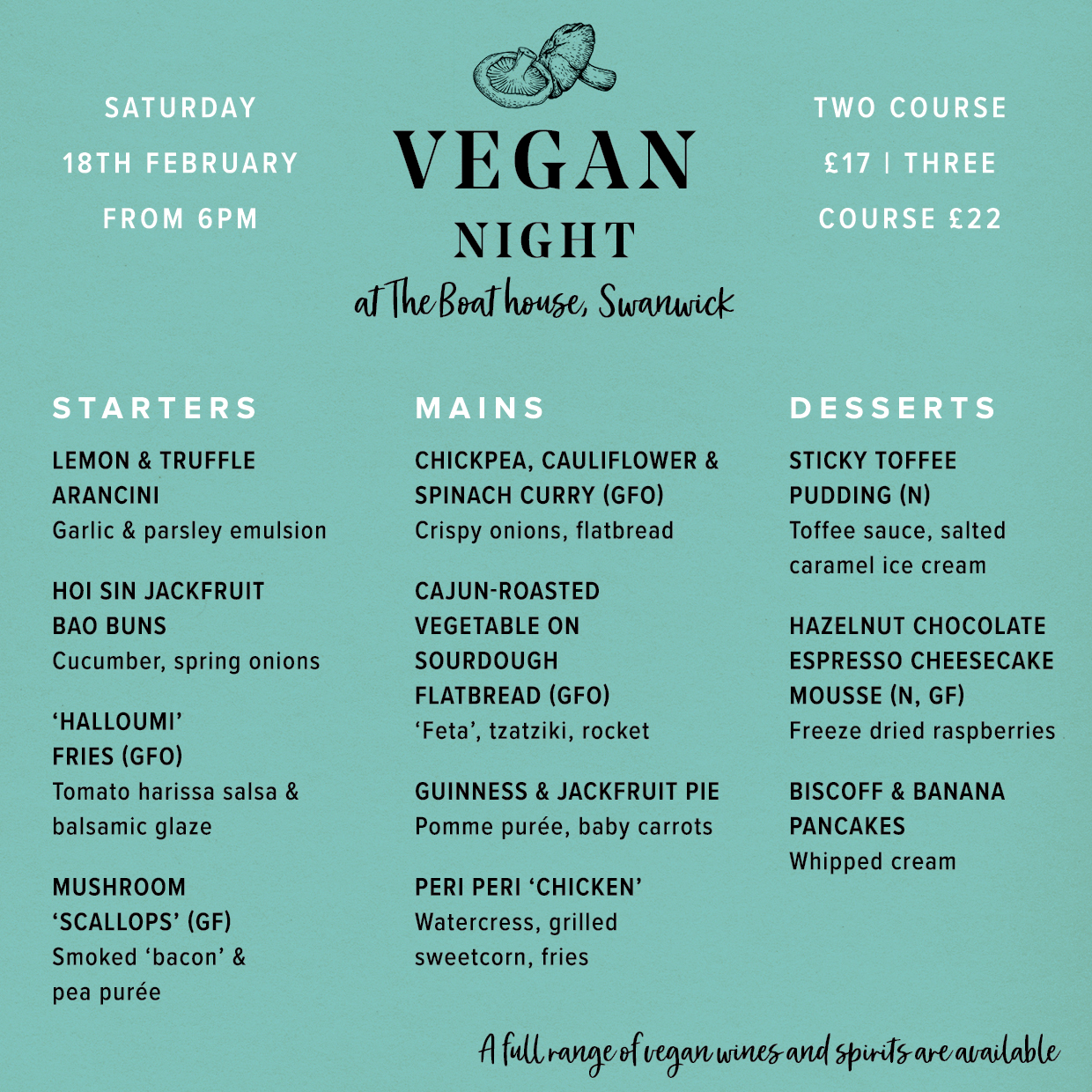 VEGAN NIGHT | THE BOAT HOUSE CAFE, SWANWICK