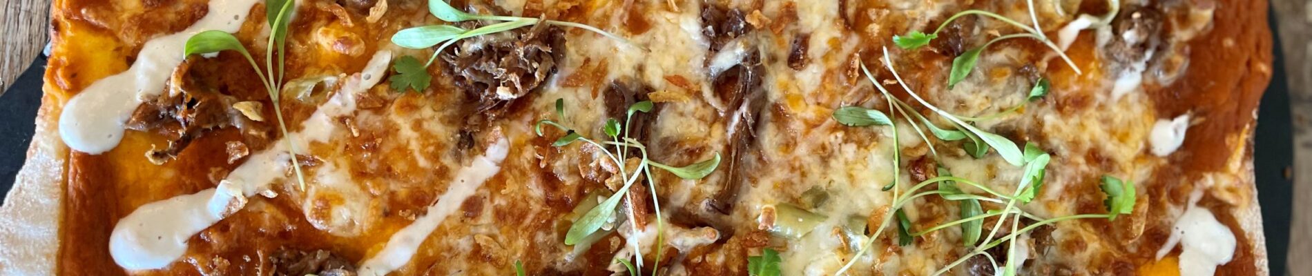 £15Boat House slaw, jalapeno, smoked vegan applewood